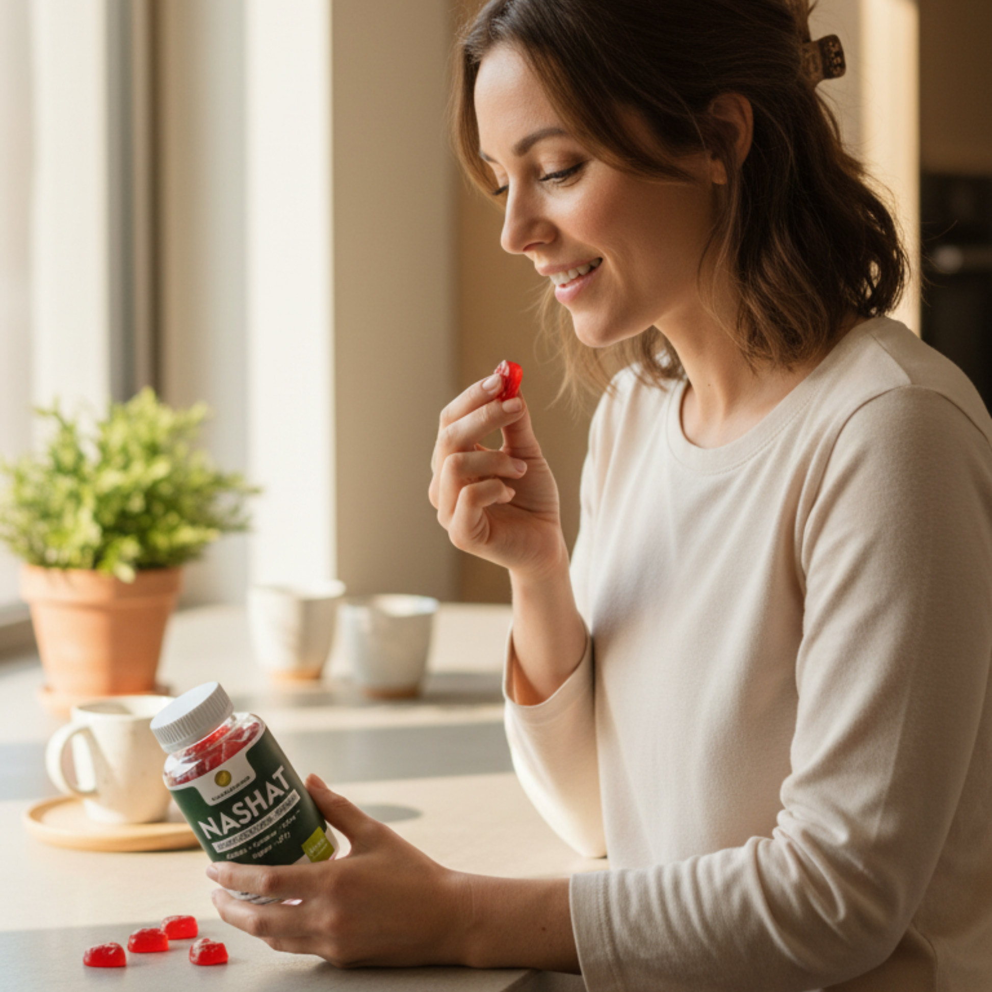 Mit Nawa Nashat kaufst du nicht nur ein Supplement: du entscheidest dich für natürliche Energie, sanften Fokus und täglichen Support – in Form von leckeren Gummies mit Dattel, Maca, Guarana, Ingwer und Vitamin B12.